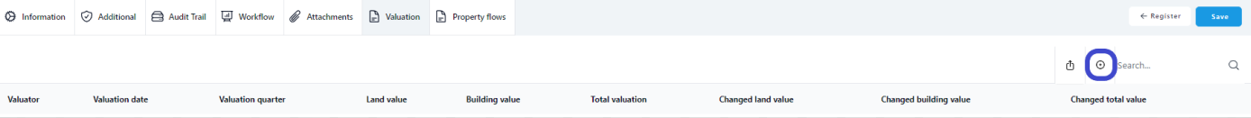 Valuation tab includes the information of possibly property valuation. The building and land can be valued separately.