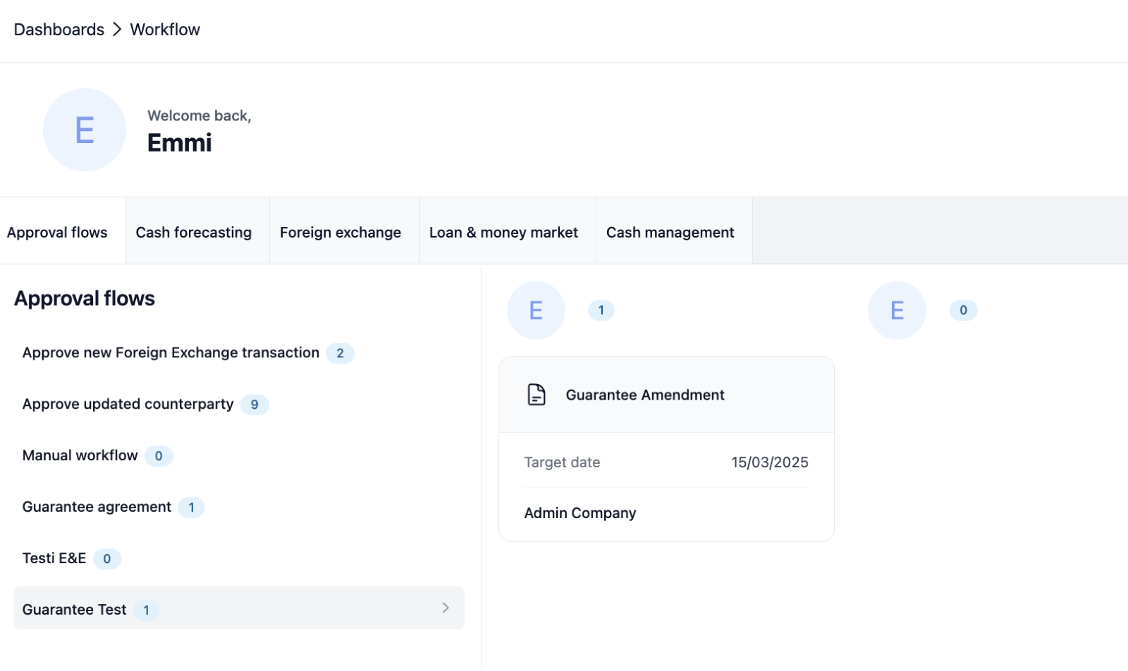 After saving the data you can find it from the list of approval flows from Dashboards > Workflows.
