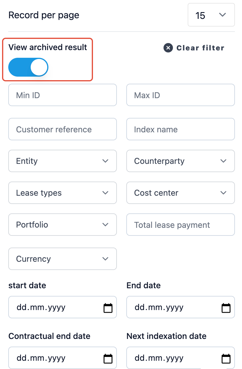 5. If an active lease has gone missing, instead of looking in the archive, you can click on Clear filter.